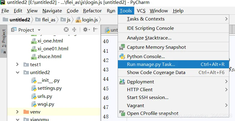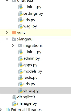 不是xiangmu里的urls.py文件,而是untitled2中的urls.py文件