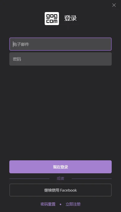 六、安装完成,打开GOG客户端登录一开始注册的账号即可